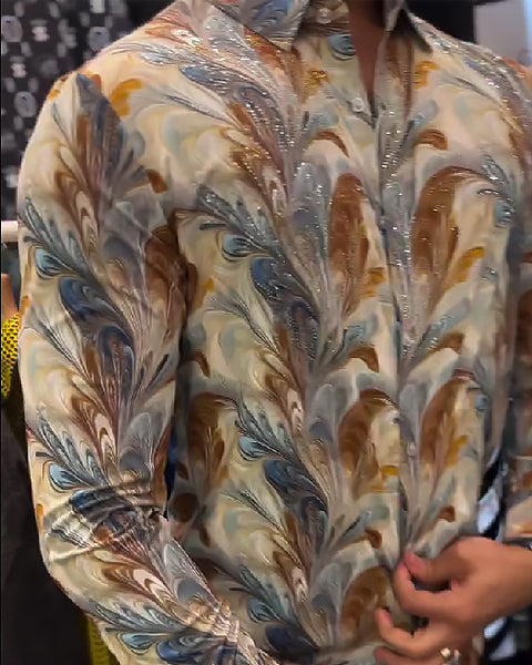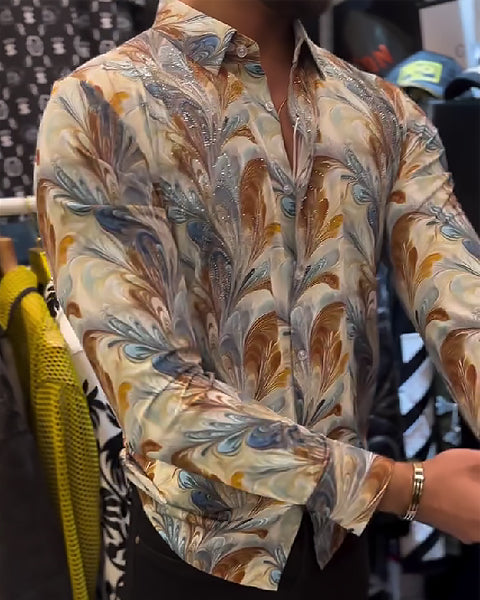 Dreamy Texture Rhinestone Sparkling Slim-Fit Shirt